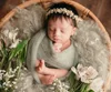 newborn baby posed in a basket wrapped in a soft sage green knit wrap by a maryland newborn photographer