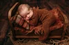 newborn baby peacefully posed in a professional studio on a soft cream backdrop with delicate lace details, capturing timeless elegant imagery by a maryland newborn photographer